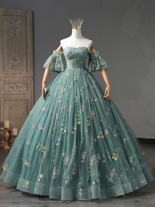 Sweet Flowers Elegant Sweetheart Ball Gown Debut Dress