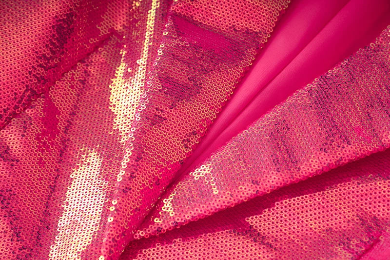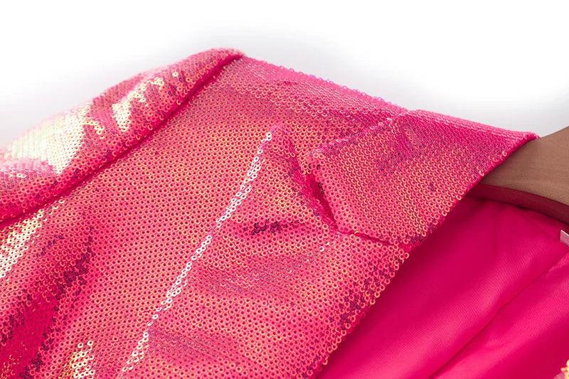 Bling Fuchsia Pink Sequins Cloth Suit Single Button Blazer Shorts 2 piece Sets
