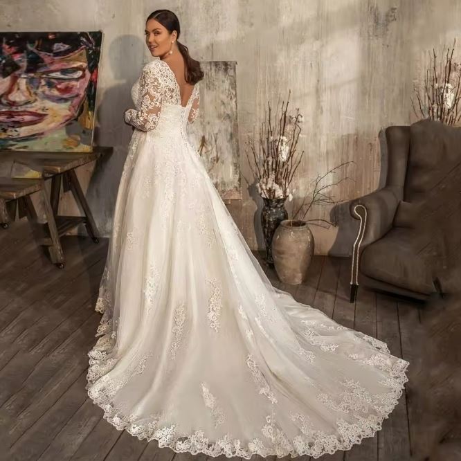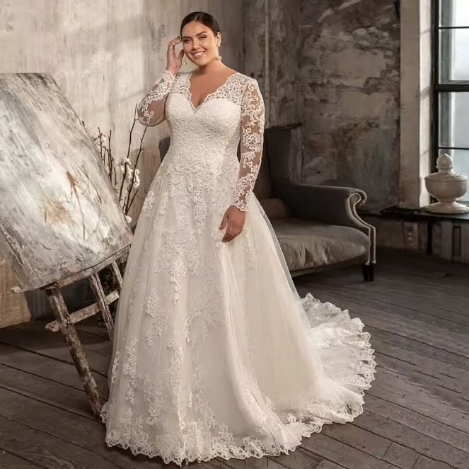 Elegant Long Sleeves Plus Size Wedding Dresses