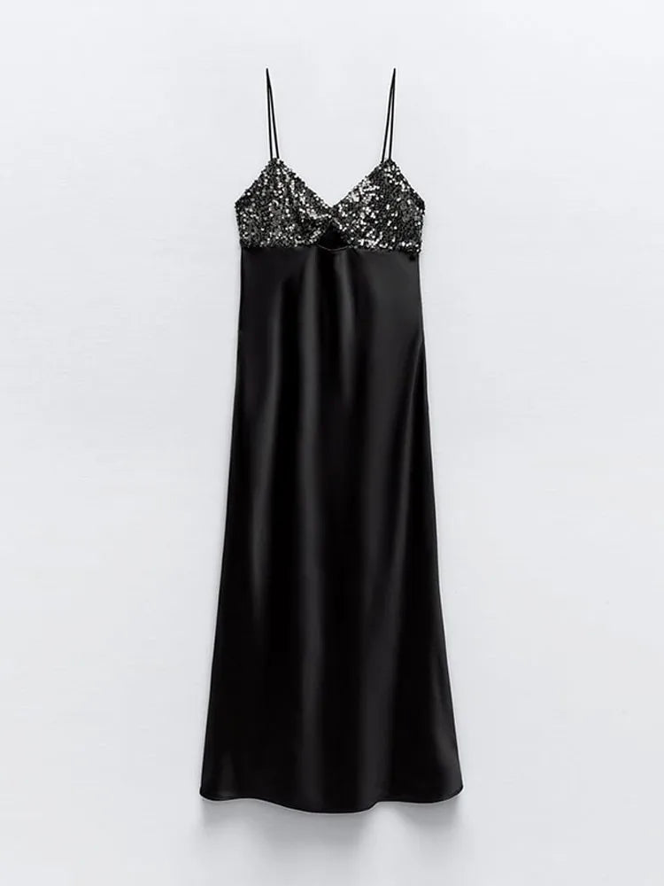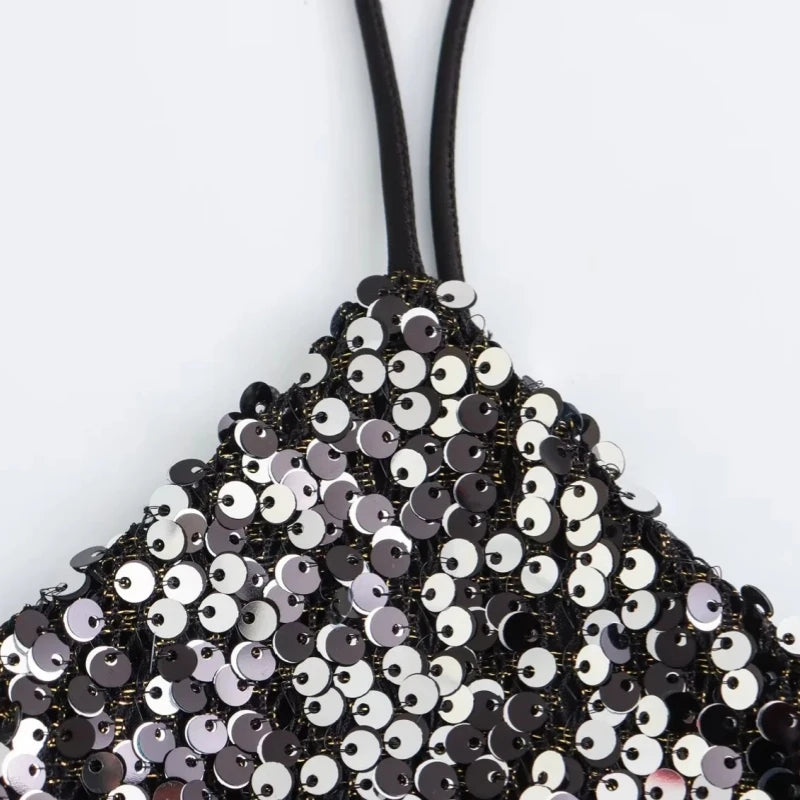 Elegant Sequins Patchwork Ladies Sexy Backless Cut Out Evening Party Prom Dress