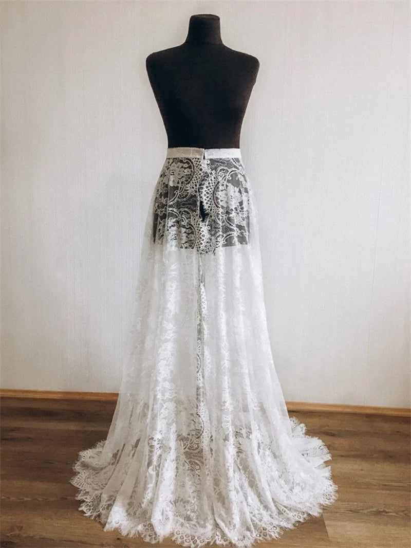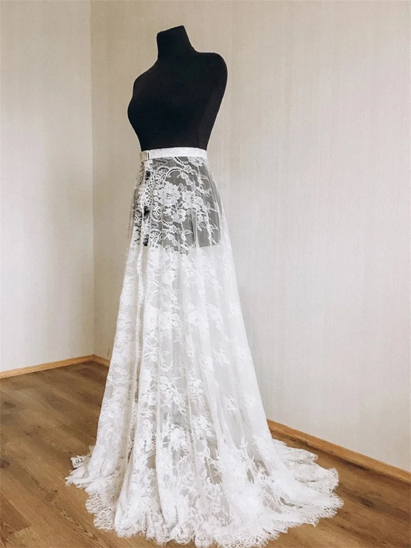 High Waist Bridal Detachable Skirt Full Lace Wedding Overskirt