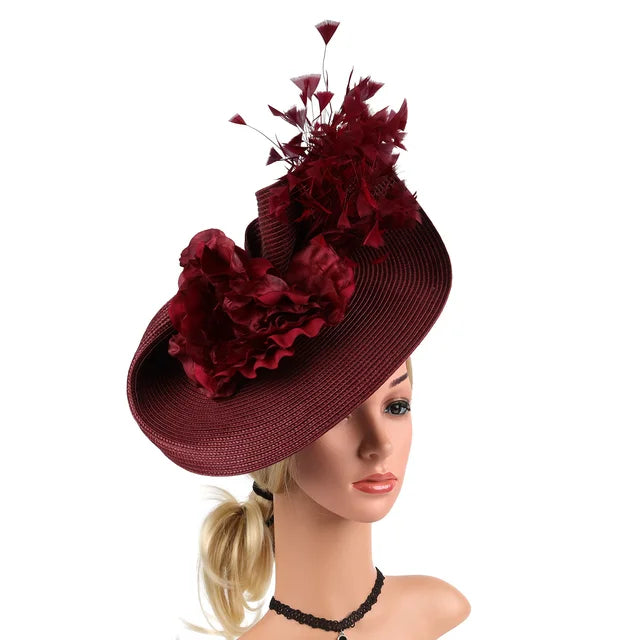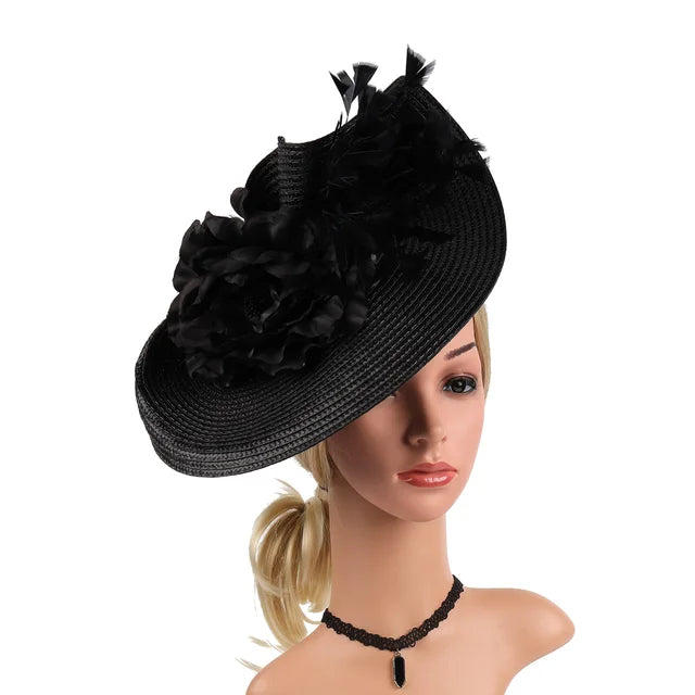 Kentucky Hat Women’s Fascinator Derby Straw Feather Pillbox Hat for Cocktail Wedding