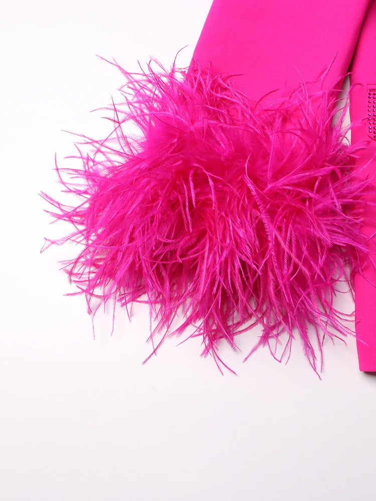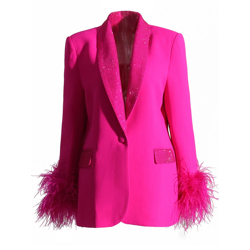 Loose Blazers For Women Shawl Collar Long Sleeve Spliced Feather Chic Blazer