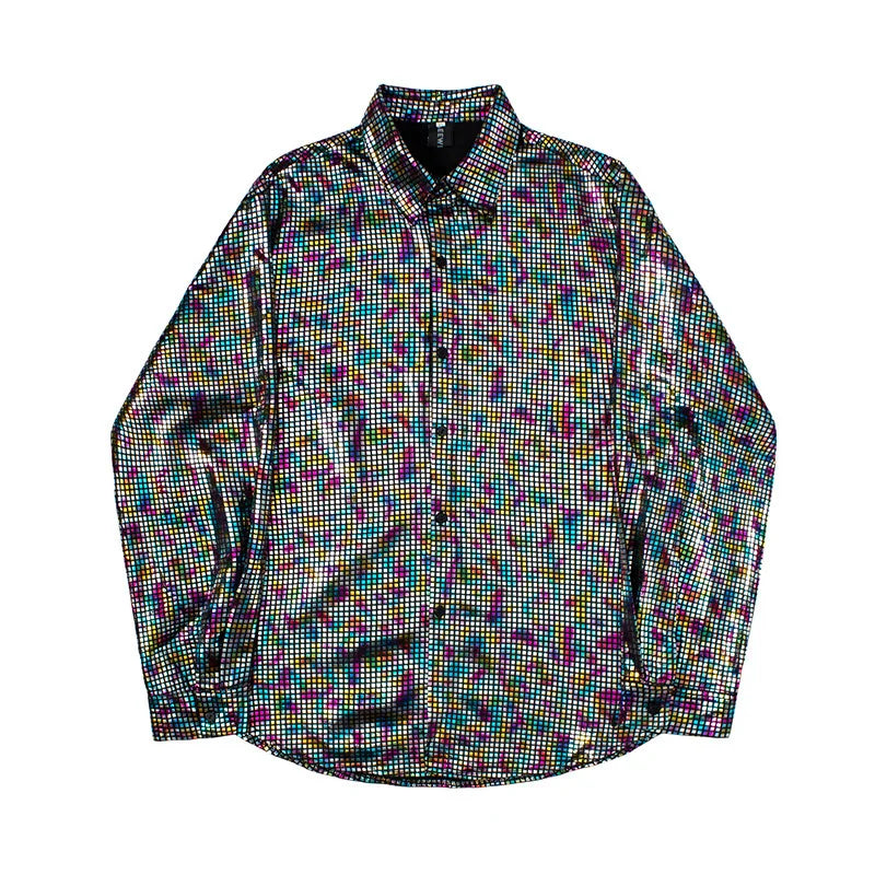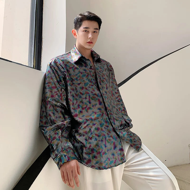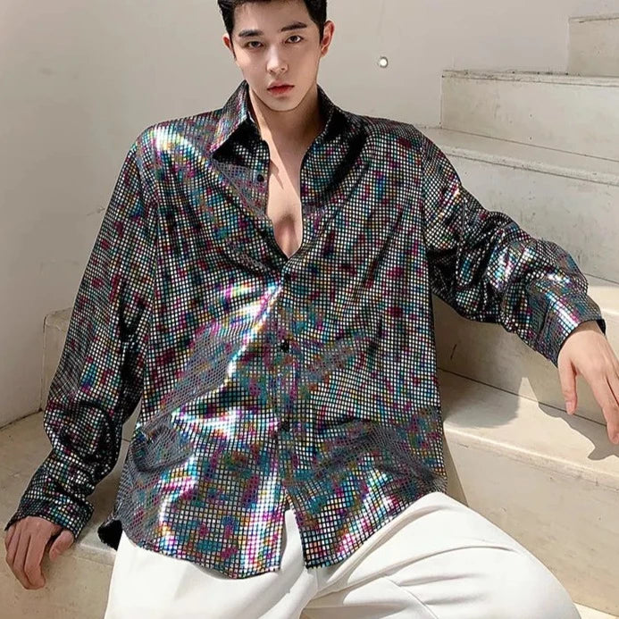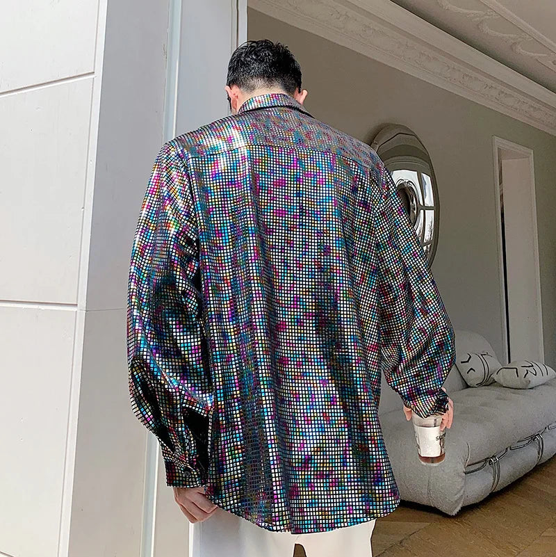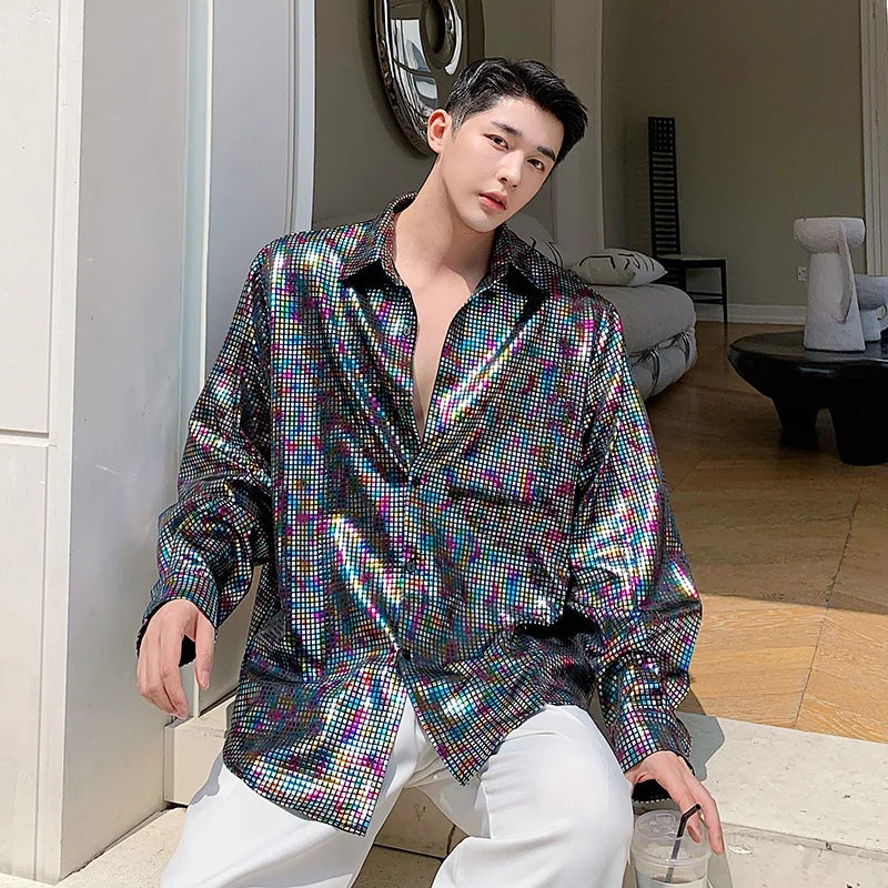 Loose Shirt Men's Sequin Long Sleeved Polo Club Party Wear