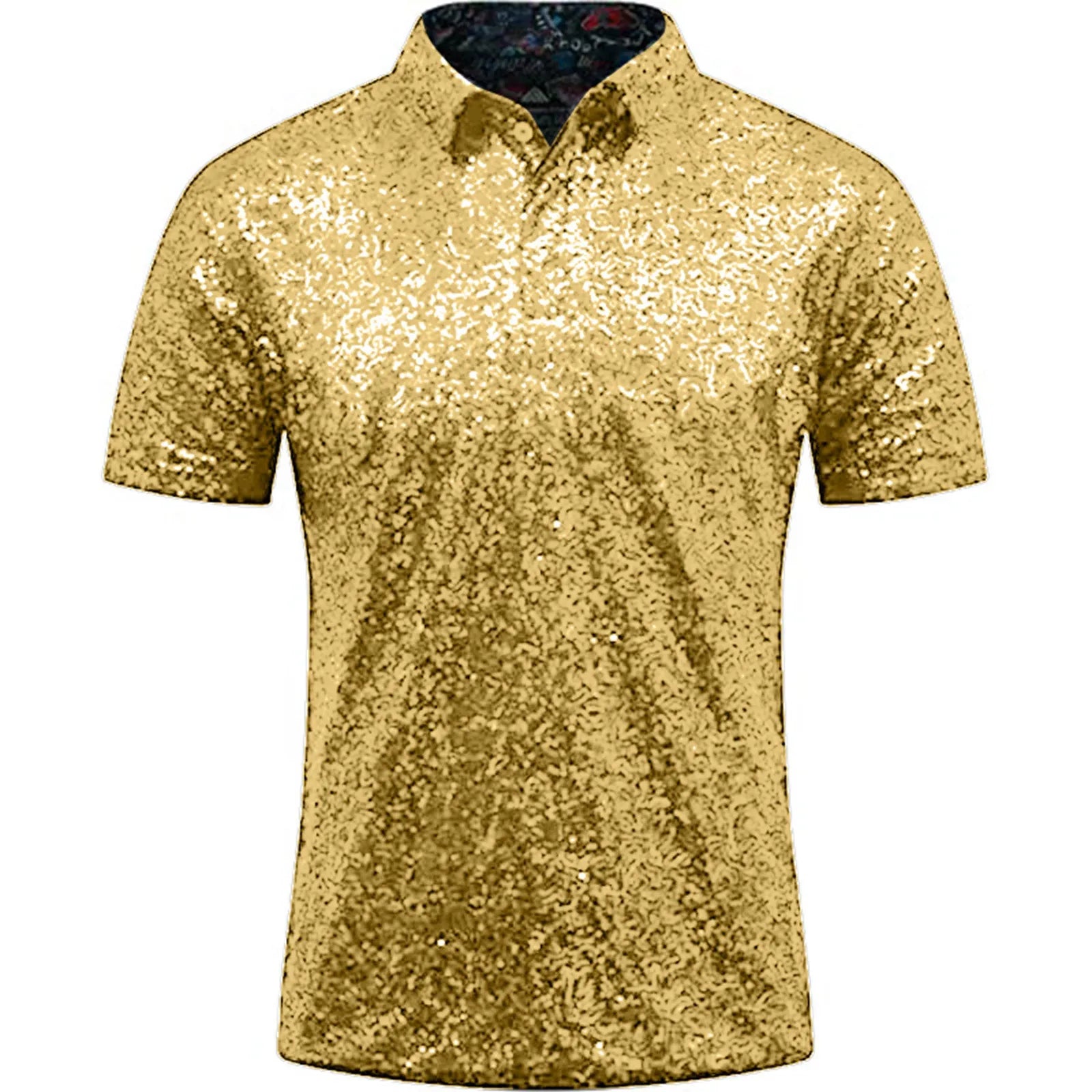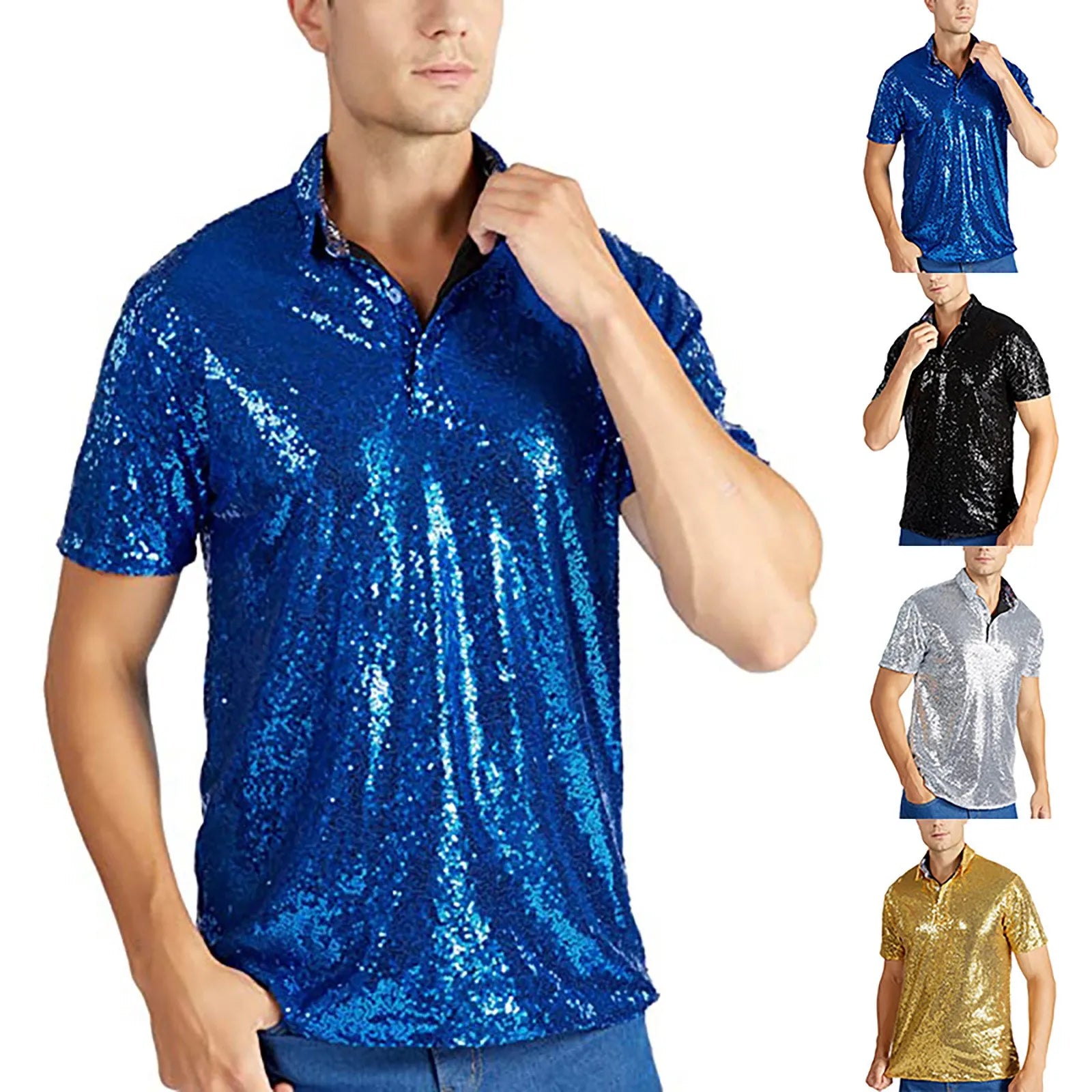 Men's Relaxed Short Sleeve Turndown Sparkles Sequins Polos Shirts 70s Disco Nightclub Party