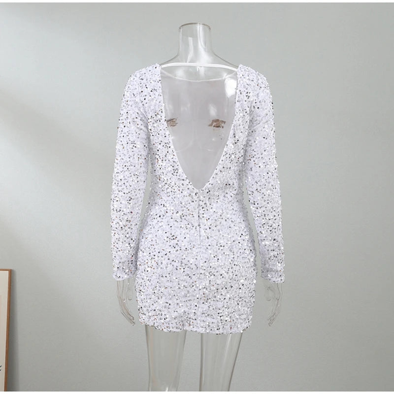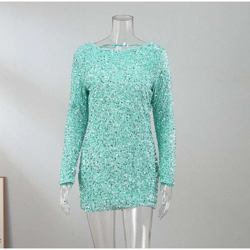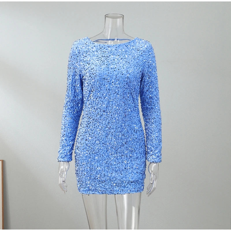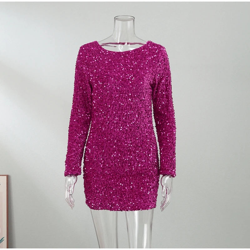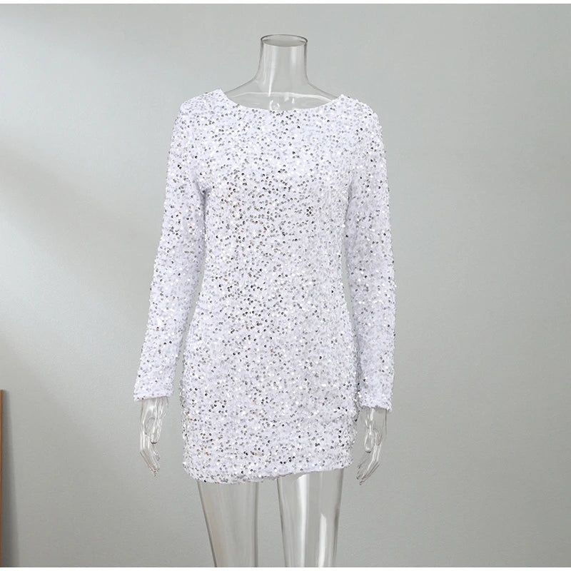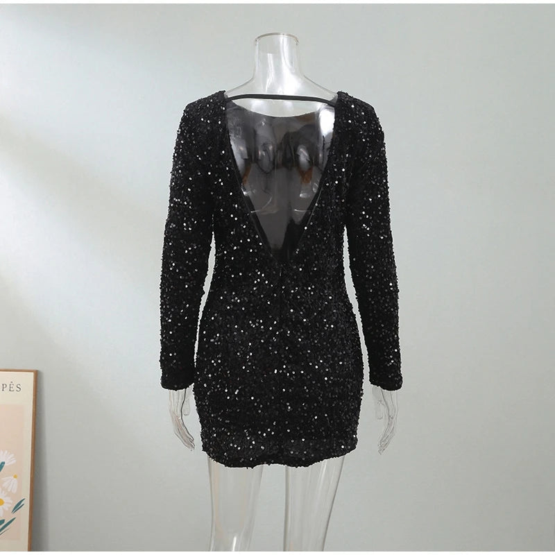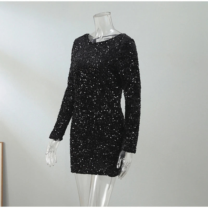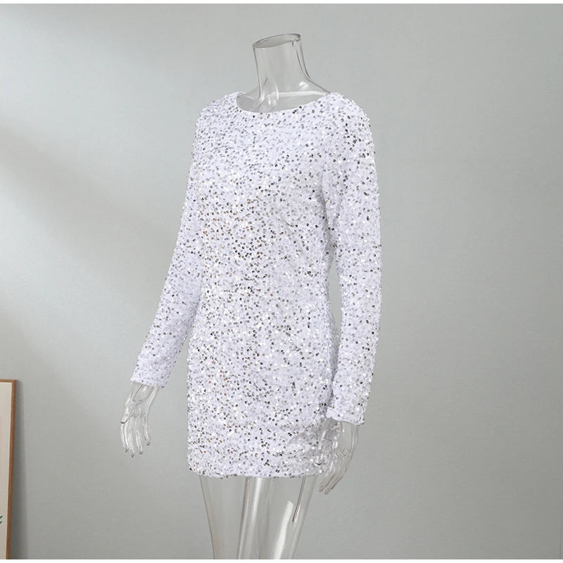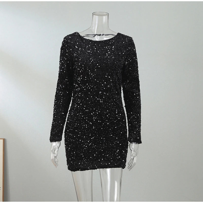 Sequin Short Dress For Women Party Dresses Female Elegant Chic Long Sleeve