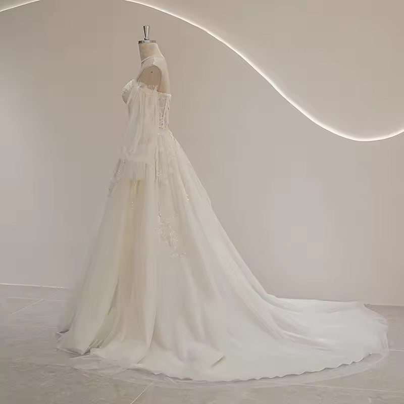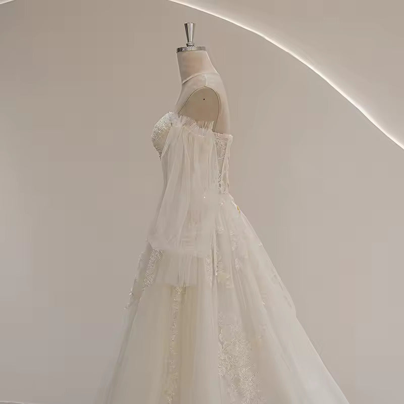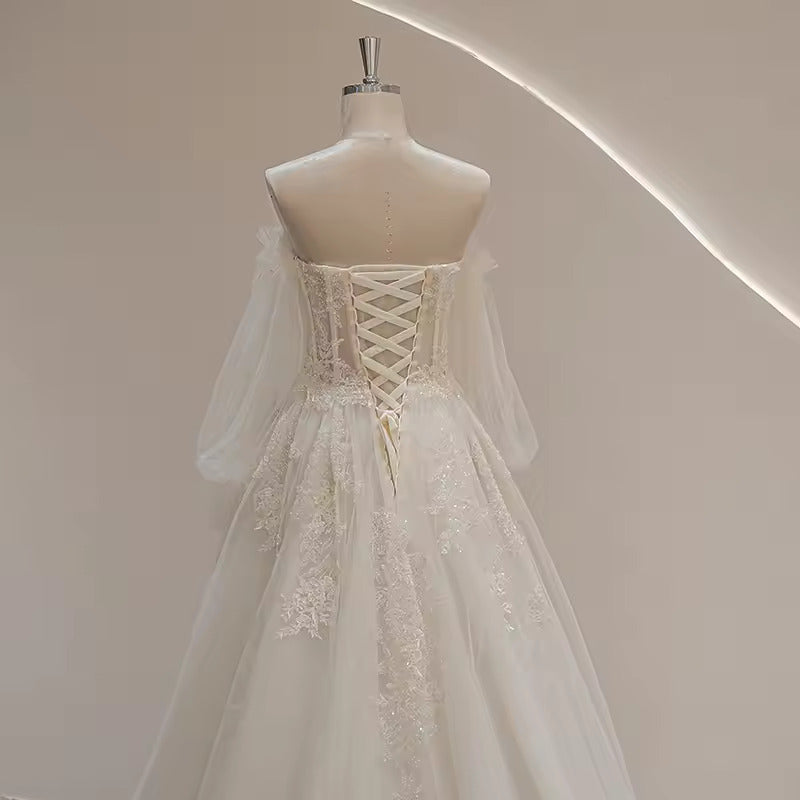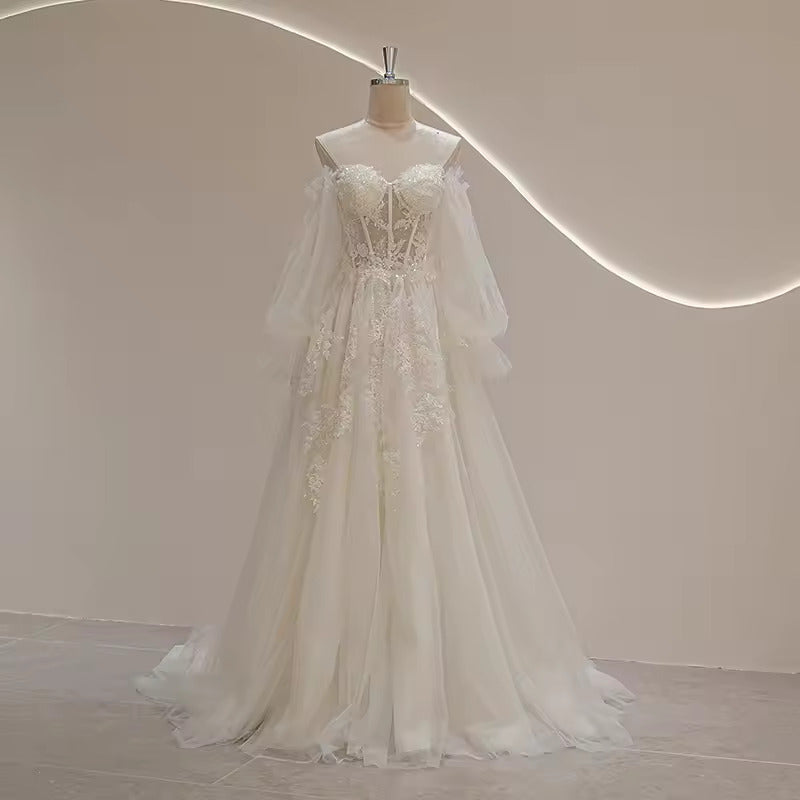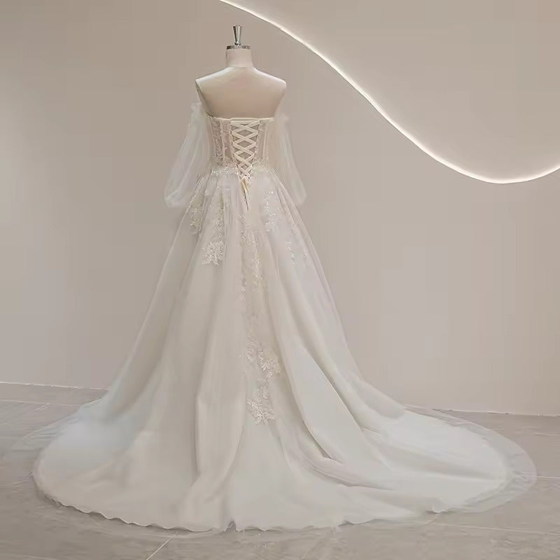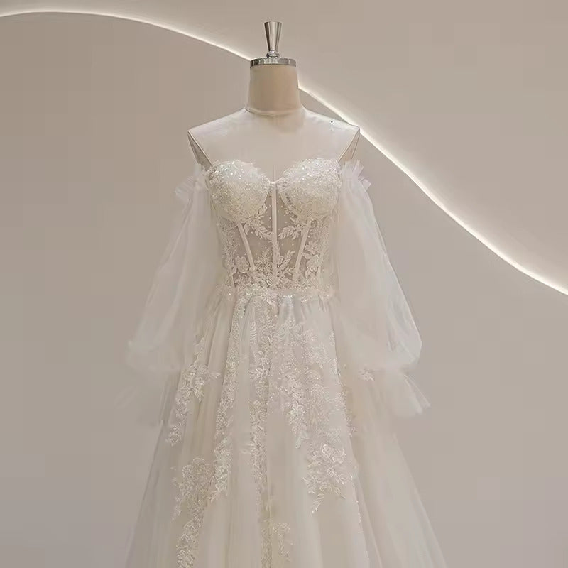 Sweetheart Neckline Puff Long Sleeve Bride Wedding Dress